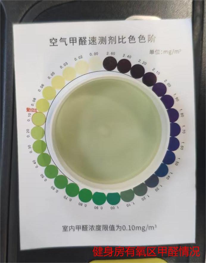 次日早上六点多起床,去了健身房,毕竟我不希望自己测健身房甲醛的事情被健身房的老板或者管理或者员工知道,不然大概率会弄得大家都不开心,本质上这样对他们是好的,一来能够提醒他们天天待在健身房里要注意自己的健康,二来也能够让他们想办法降低健身房的甲醛含量,但是考虑到大部分人都是情绪性动物,矛盾可能还是有的,所以我打算在1.5小时内测完离开。健身房预计是10点开门,我需要在8点前完成测量。测量两个地方为主,一个是有氧区,即跑步机区域,另一个是操房区,即面积最小的那个封闭区域,理论上那个地方的甲醛含量应该是健身房里最高的活动区域(活动区域不包含存物柜和更衣室)。经过一小时的测量,得到的结果让人惊讶: