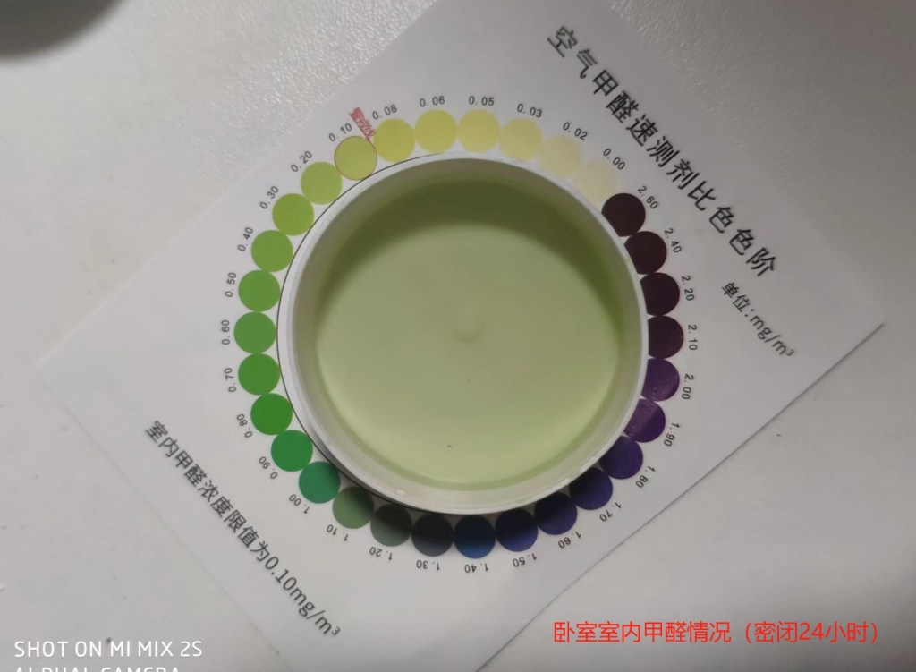 相对下来,手持测量和药水测量得到的结果差距还是挺大的,但是大小值方面问题倒是不大。木质衣柜的甲醛含量确实超标,只是在卧室空气方面两种测量方式跨过了0.10的门槛。记得0.10是国家规定的阈值,而0.08是商业公共区域的阈值,而0.05则是幼儿学校等区域的阈值,所以总体来说,我现在住的这个房子虽然已经出租装修过8年了,但是仍然甲醛范围不在安全的范围内,当然这个是密闭24小时候的情况,平时不会密闭这么久。所以这次测量后得到的结果就是以后要经常开窗通风,目前为止,网上窗户会关小,白天窗户大开,除非天气预报有雨,否则就会继续这样保持了,毕竟这种操作相对下来是一种高收益操作吧:开着窗户能换来稀有的健康(或者说是减少因甲醛致病得概率)。