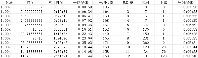 目前能获得的数据主要有两部分,全部来自于高驰手表的数据记录,这两次数据内容分别来自于两次不同时间的比赛: