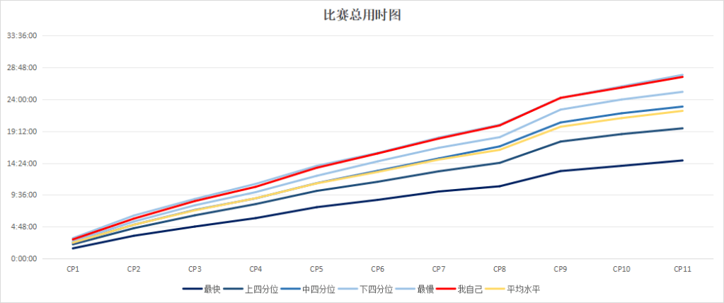 先说说自己的目标,作为26小时到28小时的急救志愿者,我的目标是在27小时的时候过线,然后按照每个CP点比关门时间累计早5分钟即可,这样5*11就是55分钟,即预计27:05过线的,完美完成急救志愿者的工作,但实际情况似乎并没有想的那么好。
