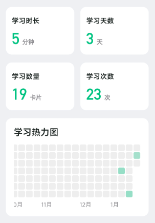 这是截止到1月27日的截图,只试过3天,且每次都没有达到50张的要求。这块来看,其实是可以在通勤中进行的,如果有带耳机,就操作多领国,如果没有带耳机,就看滑记闪卡,这似乎是个好方式